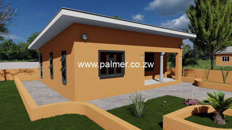 2 bedroom cottage house plan with a beautiful flat stylish roof design. Features include IBR chromadeck roof sheets cover and neatly pointed/jointed brick walls without plastering. 100sqm